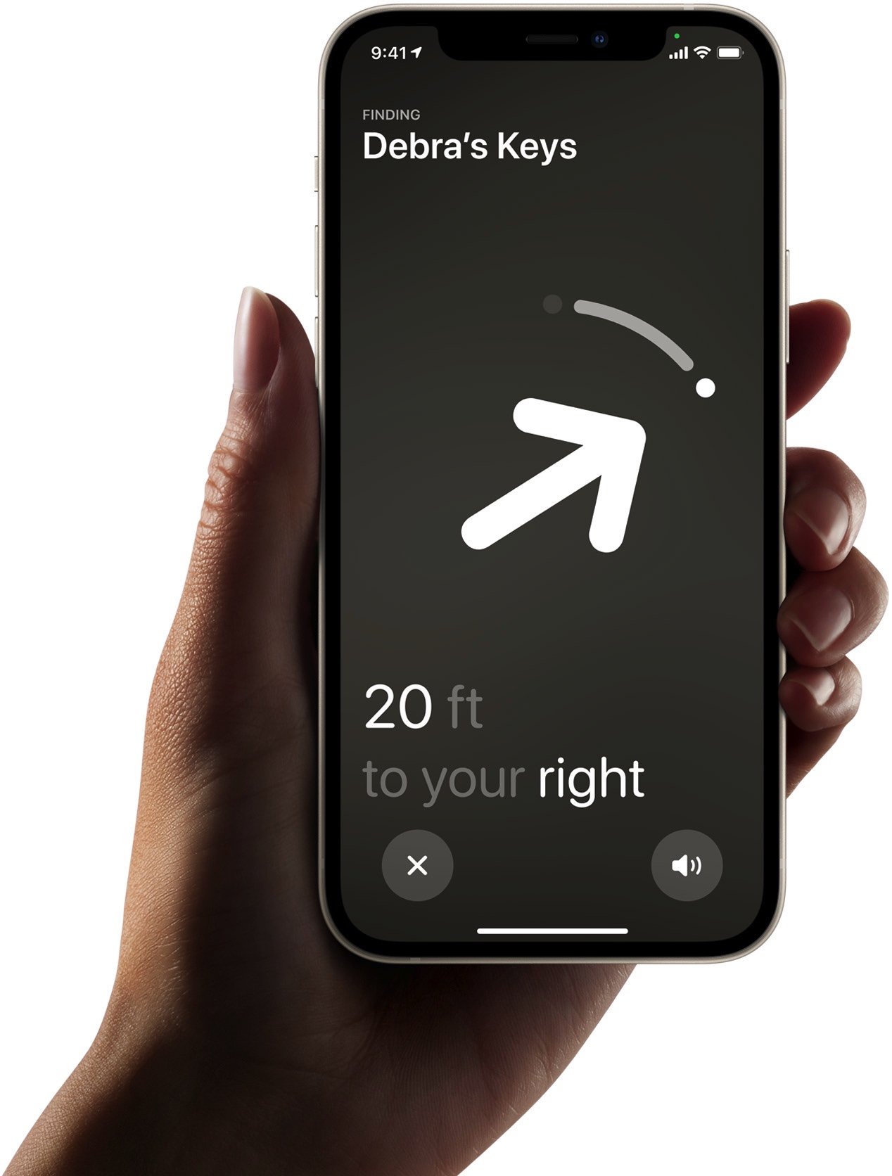 Nếu AirTag của bạn ở gần, iPhone của bạn có thể dẫn bạn đến thẳng nó với tính năng Tìm kiếm chính xác. 1 Bạn sẽ thấy khoảng cách đến AirTag của mình và hướng đi đến - tất cả là nhờ công nghệ Ultra Wideband.