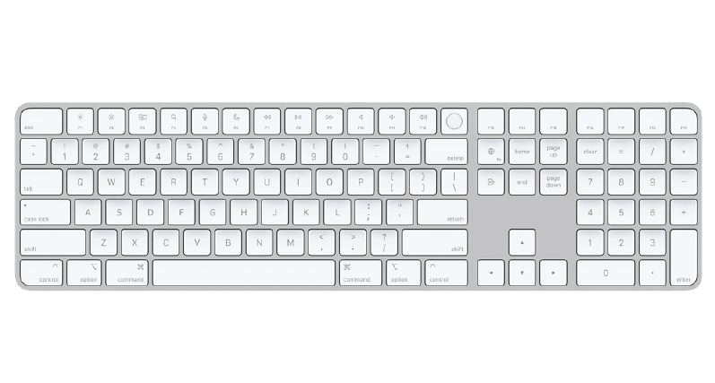 Magic Keyboard with Touch ID and Numeric Keypad (2021) mang lại một trải nghiệm cao cấp nhất cho người dùng: cách thức gõ phím vô cùng nhẹ và êm ái, đạt tốc độ chính xác nhanh. Thiết kế tinh tế sắc sảo với các nút điều khiển được Apple sắp xếp một cách thông minh và logic, các phím mũi tên kích thước chuẩn xác, thuận tiện phục vụ cho công việc, giải trí mọi lúc mọi nơi. Bàn phím có tính năng kết nối không dây và tự động sạc ngược, thời gian sử dụng có thể kéo dài lên đến 1 tháng.
