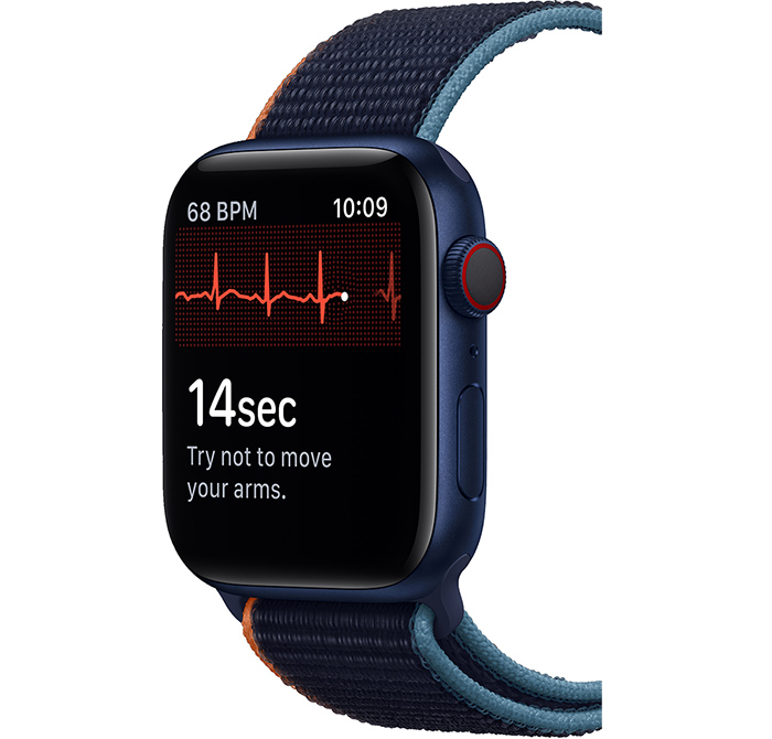 Với ứng dụng ECG, Apple Watch Series 6 có khả năng tạo ra một điện tâm đồ tương tự như điện tâm đồ một đạo trình. Đây là một thành tựu quan trọng đối với một thiết bị đeo có thể cung cấp dữ liệu quan trọng cho các bác sĩ và sự an tâm cho bạn.