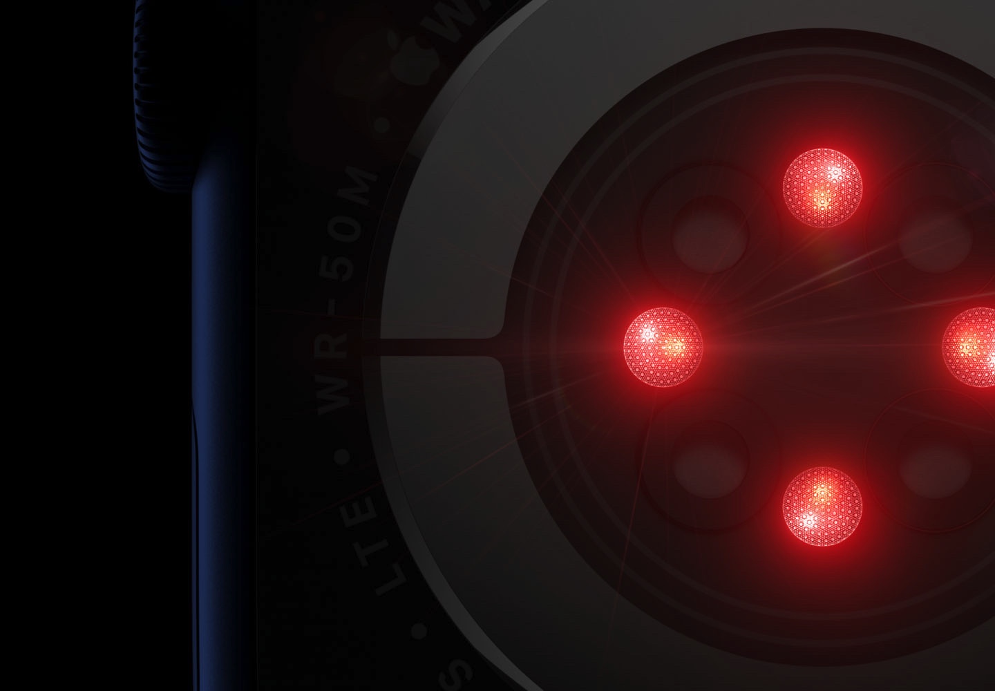 Chiếu sáng sâu. Đèn LED màu xanh lá cây, đỏ và hồng ngoại chiếu ánh sáng vào các mạch máu ở cổ tay của bạn và điốt quang đo lượng ánh sáng phản xạ trở lại. Các thuật toán nâng cao sau đó sẽ tính toán màu máu của bạn, cho biết lượng oxy hiện có.