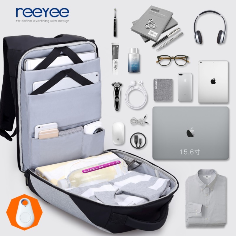 - Balo reeyee gồm 1 ngăn chính lớn, bên trong có ngăn để laptop 15.6 inch, ngăn để ipad - tablet và các ngăn để phụ kiện, bút viết, sạc, điện thoại...