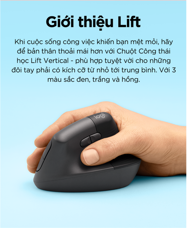 Hình dáng thẳng đứng của Lift giúp cổ tay có cảm giác “thư giãn” khi làm việc, và tạo ra tư thế tự nhiên hơn ở cẳng tay cho cả ngày dài thoải mái và hiệu quả.