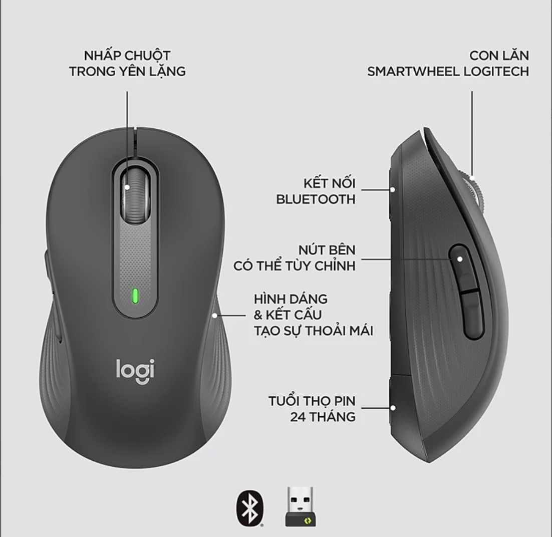 Kết nối: Đầu thu USB Logi Bolt/ Công nghệ Bluetooth tiết kiệm năng lượng