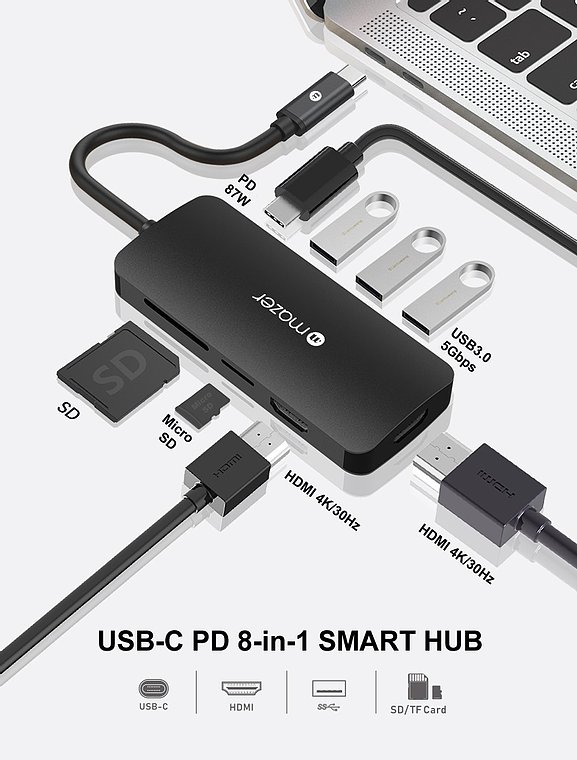 - Biến một kết nối USB-C duy nhất thành 8 cổng chuyển đổi tiện dụng