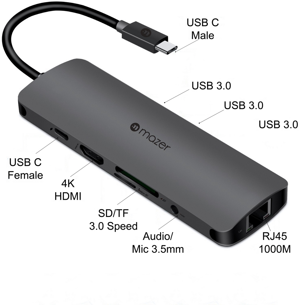 Cổng Chuyển Đổi Mazer USB-C 9 in 1 HUB gồm có những cổng như: