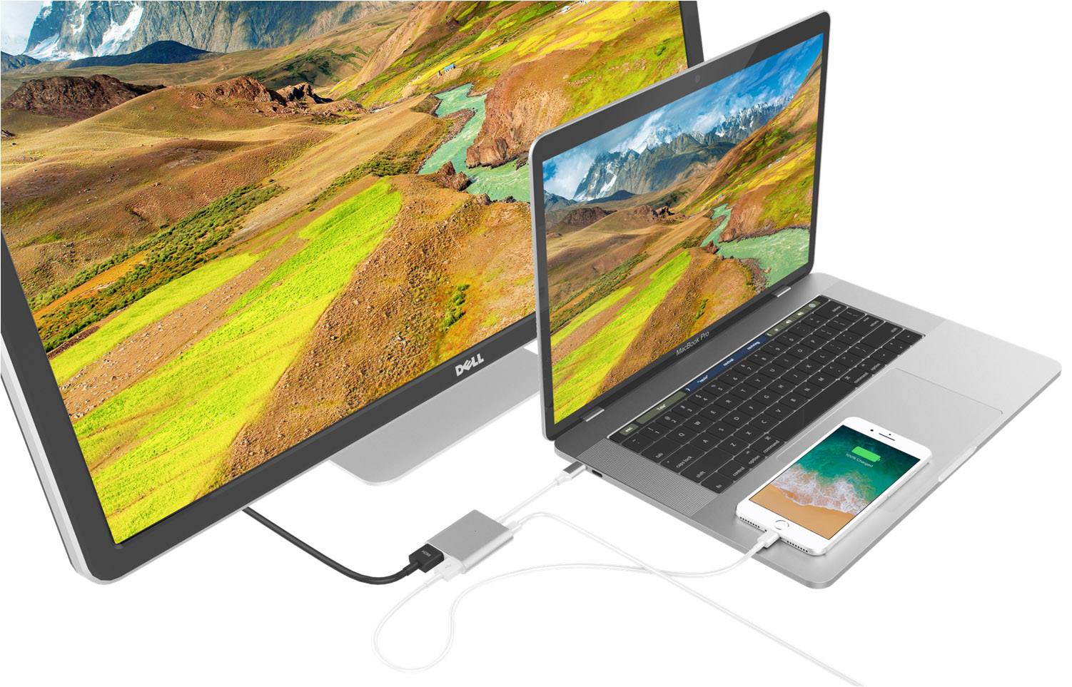 Hyperdrive 4K HDMI 3-in-1 USB-C hub hỗ trợ xuất từ 1 cổng USB-C của Macbook Pro 12, 13″15″ 2016/2017 hay các dòng Laptop sử dụng USB C ra 3 cổng cơ bản thông dụng: