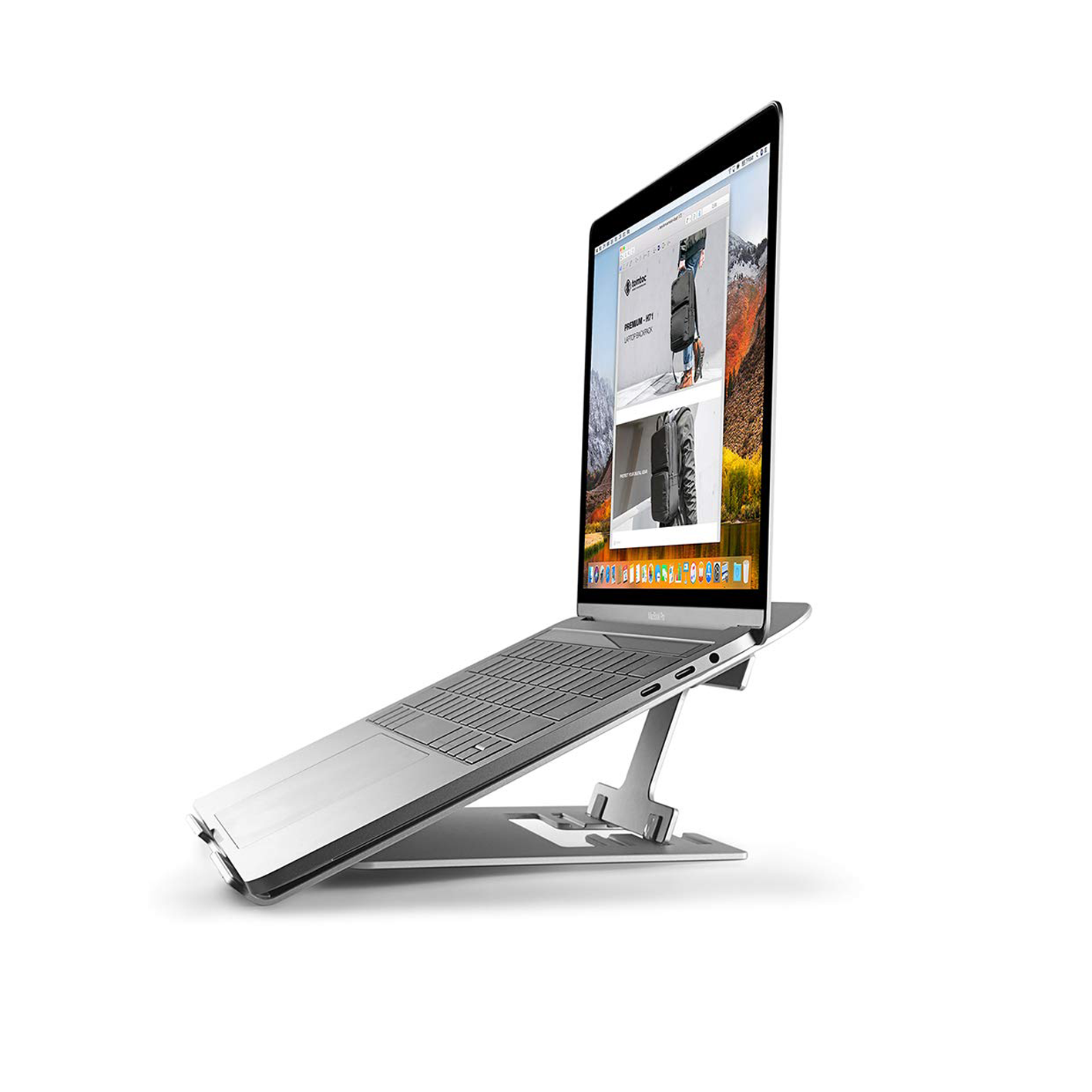 THIẾT KẾ ERGONOMIC: THIẾT KẾ CÔNG THÁI HỌC – làm cho chiếc đế trở nên cơ học hơn, tiện dụng và thoái mái hơn cho người dùng nên chúng ra có thể điều chỉnh góc độ nhìn của máy tính xách tay hoặc máy tính bảng ở những vị trí của 3 góc (góc 20º / 24º / 25º) để gõ bàn phím và xem màn hình máy tính thoải mái hơn. Điều này giúp giảm đau trên vai, cổ và đặc biệt là vì tầm nhìn vừa tầm nên giúp bạn tránh được tình trạng mỏi mắt.
