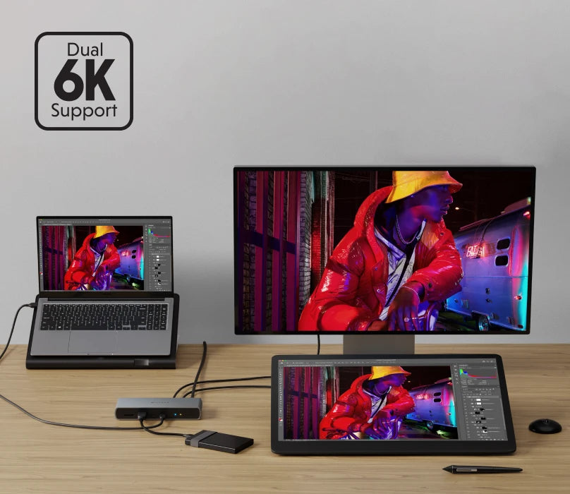 Hỗ trợ màn hình đôi độ phân giải 6K 60Hz thông qua cổng HDMI và/hoặc Thunderbolt.