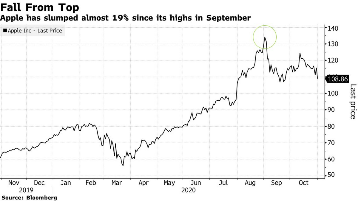 31/10/2020 Đăng bởi: Son SNHai hạng mục quan trọng nhất của Apple, doanh thu từ iPhone và doanh thu từ thị trường Trung Quốc không đạt như kỳ vọng, cổ phiếu Apple lao dốc, giá trị vốn hóa của Apple trong ngày 30/10 đã bốc hơi 111 tỷ USD.