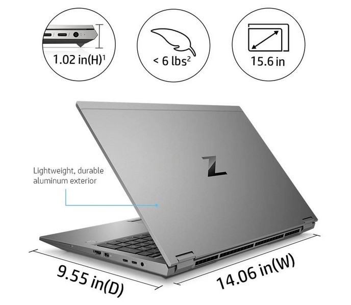Ngoài ra, HP ZBook Fury 15 G7 còn sở hữu cho mình một kích thước siêu mỏng đối với dòng máy trạm. Chiều rộng: 357 mm, Chiều sâu: 242mm, Chiều cao 26mm.