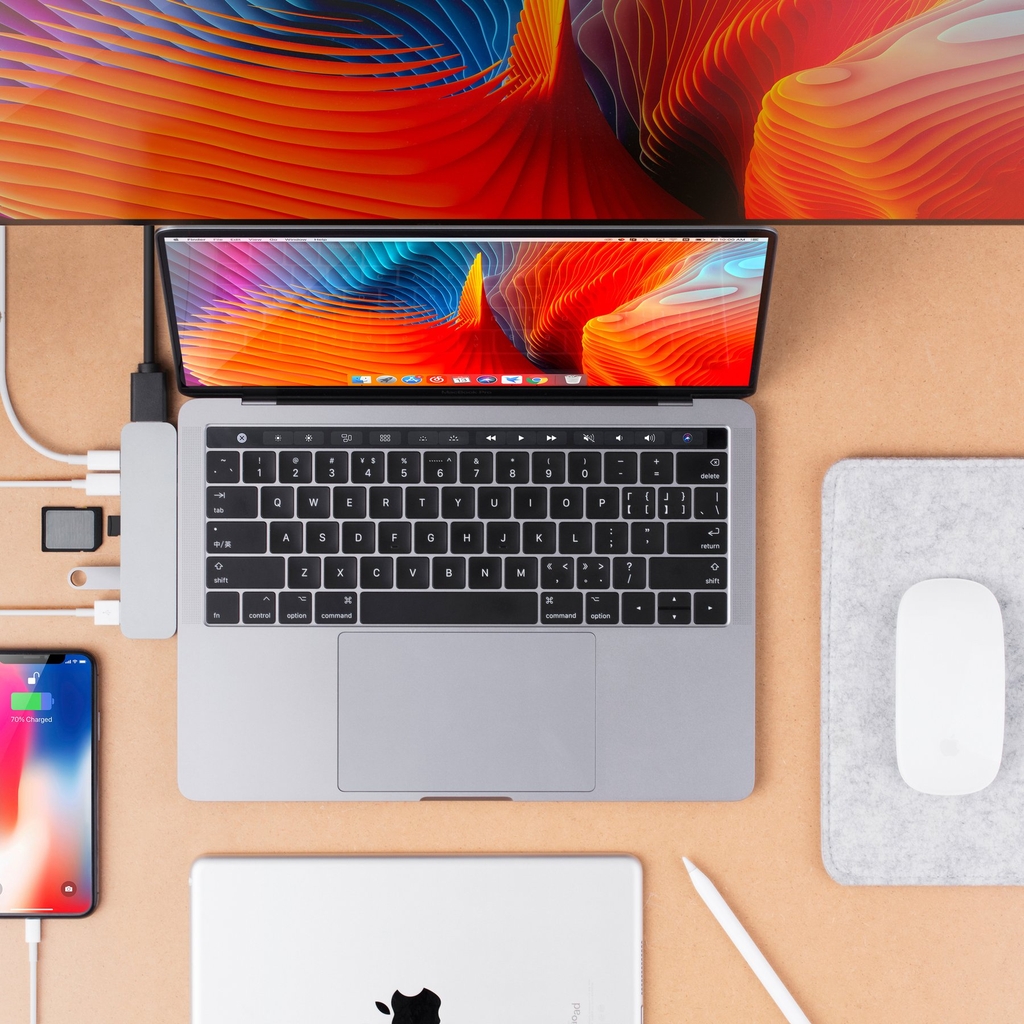 – Băng thông cực lớn 50Gb/s, Phiên bản Dual hỗ trợ xuất từ 2 cổng USB-C của Macbook Pro ra 7 cổng: