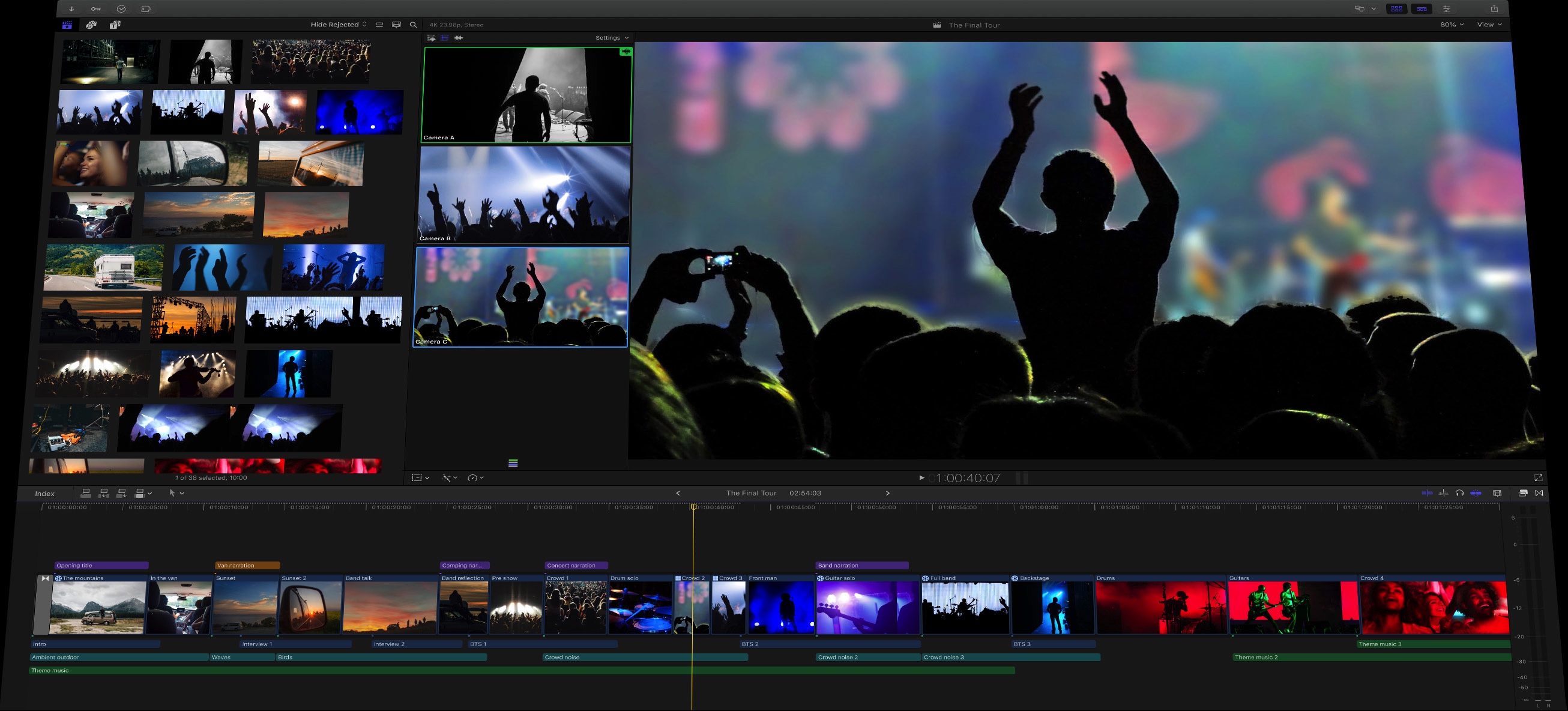 Mic, camera, action. Từ các cuộc gọi video và ghi âm giọng nói trong như pha lê cho đến âm nhạc và phim ảnh lấp đầy không gian phòng, iMac là một ngôi sao nổi bật về liên lạc và nội dung. IMac 27 inch hiện có camera FaceTime HD 1080p và dãy ba micrô chất lượng studio. Và chip T2 hoạt động phối hợp với loa để kích hoạt EQ thay đổi và phản hồi âm trầm nâng cao, vì vậy tất cả nội dung của bạn có thể có âm thanh trung thực lớn và cân bằng.