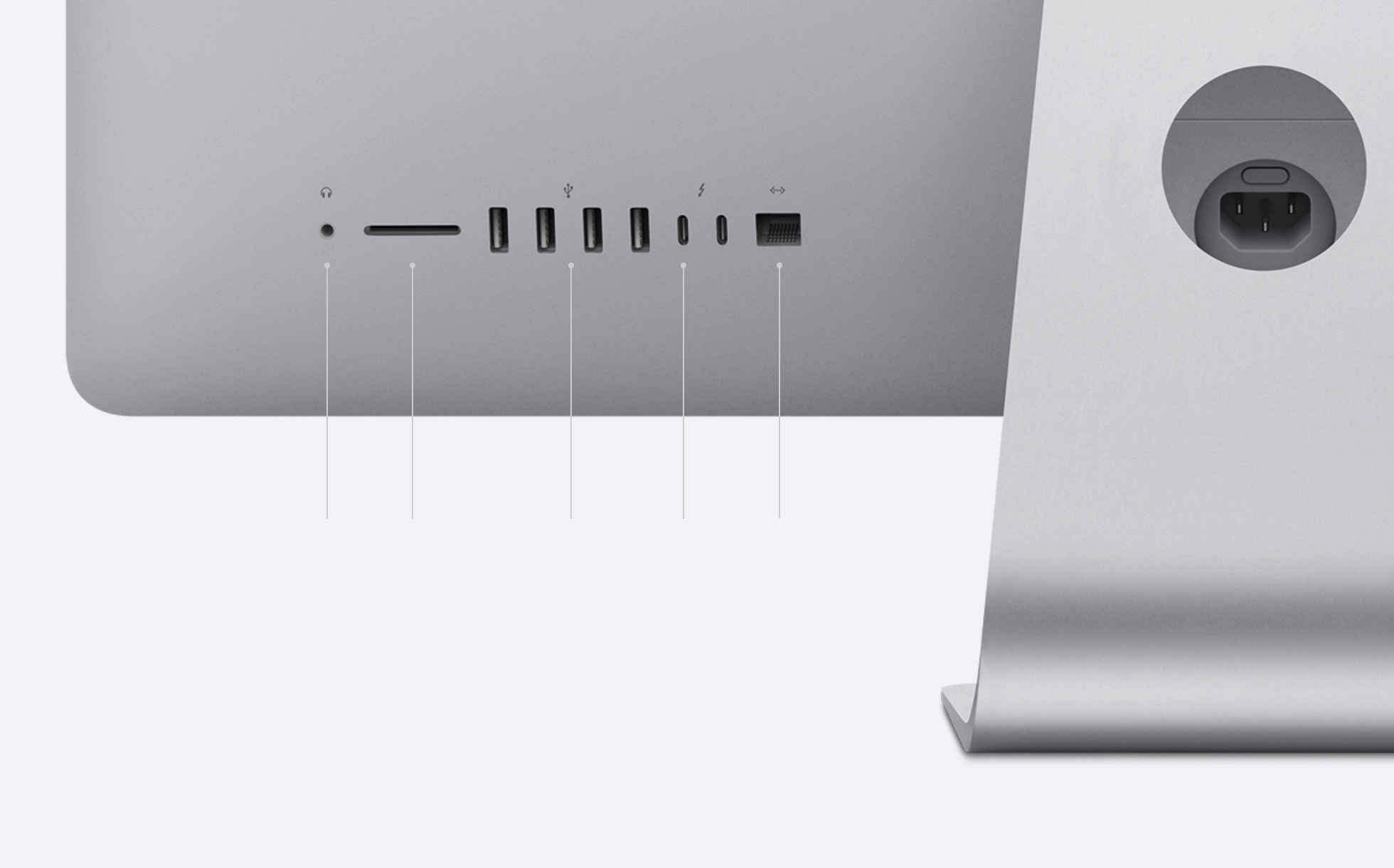 Mỗi iMac đều có hai cổng Thunderbolt 3 (USB-C) siêu nhanh và bốn cổng USB-A, mang đến cho bạn nhiều tùy chọn hiệu suất cao để kết nối ổ đĩa ngoài, máy ảnh, màn hình và hơn thế nữa. Tất cả các mẫu iMac đều có cổng Ethernet 1Gb và giờ đây bạn có thể định cấu hình iMac 27 ‑ inch với 10Gb Ethernet để có thông lượng gấp 10 lần thế hệ trước. Wi-Fi và Bluetooth cực nhanh là tiêu chuẩn trên mọi iMac và kiểu máy 27 inch có Bluetooth 5.0, vì vậy bạn được kết nối tức thì với nội dung yêu thích và các thiết bị không dây của mình.