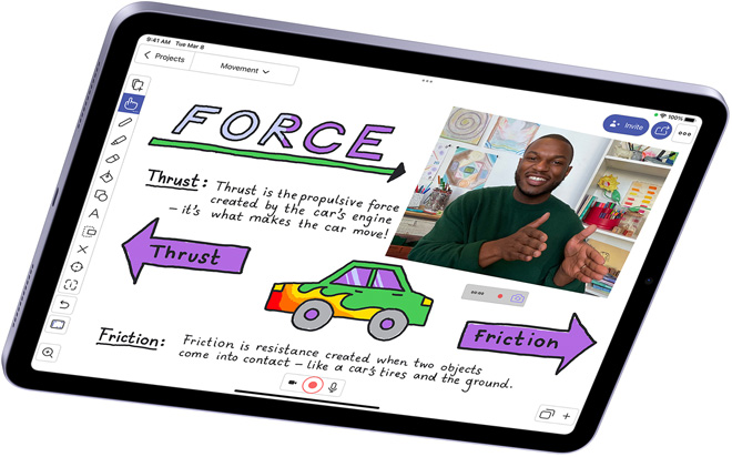 Bạn cũng có thể sử dụng camera sau để quét tài liệu và sau đó đánh dấu chúng bằng Apple Pencil.3 Và với màn hình lớn, bạn có thể quay video, chụp ảnh và chỉnh sửa chúng ngay trên iPad Air.