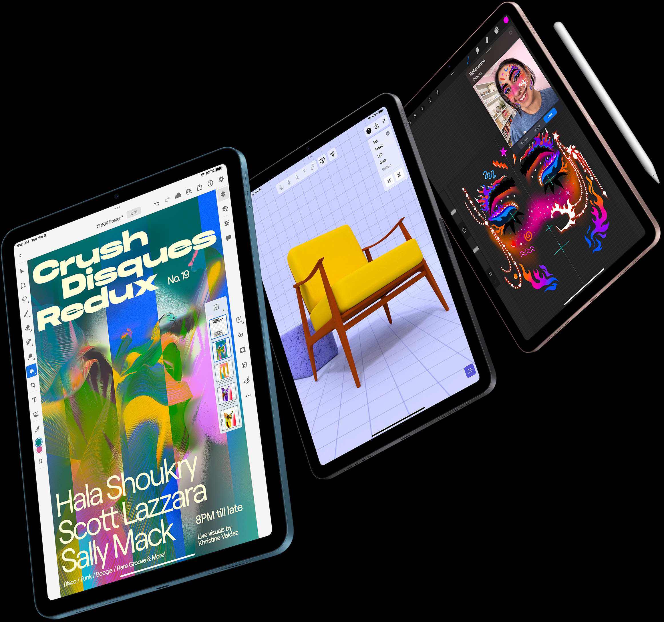 GPU 8 core đặc biệt mang đến đồ họa nhanh hơn gấp đôi, vì vậy bạn có thể vẽ bộ lọc truyền thông xã hội trong Procreate, xây dựng ở dạng 3D với uMake và hơn thế nữa. Và với thời lượng pin cả ngày, bạn có thể tiếp tục sáng tạo mọi lúc mọi nơi.