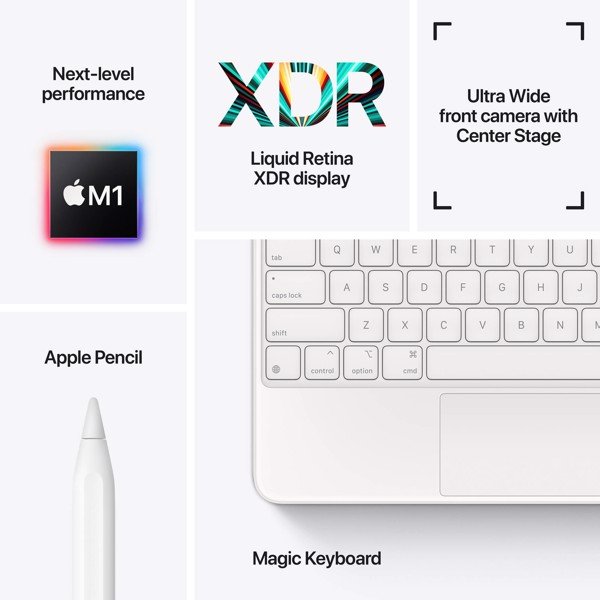 Với iPad thế hệ mới, Apple đã trang bị một màn hình Mini-LED có kích thước 12.9 inch cùng tỉ lệ tương phản 1.000.000:1. Phần viền bezels xung quanh màn hình được thiết kế thu hẹp để mở rộng thêm không gian, giúp người dùng có trải nghiệm thị giác tốt hơn.