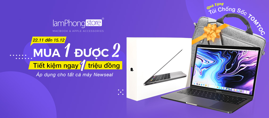 Chương Trình 2: MUA 1 Được 2 – Tiết Kiệm Ngay 1 triệu đồng – Cũng từ 25.11 đến 15.12, Lâm Phong Store Tặng ngay cho Quý khách hàng khi Mua bất kỳ Macbook trực tiếp hoặc mua Online, Trị giá quà tặng lên đến 1 triệu đồng.