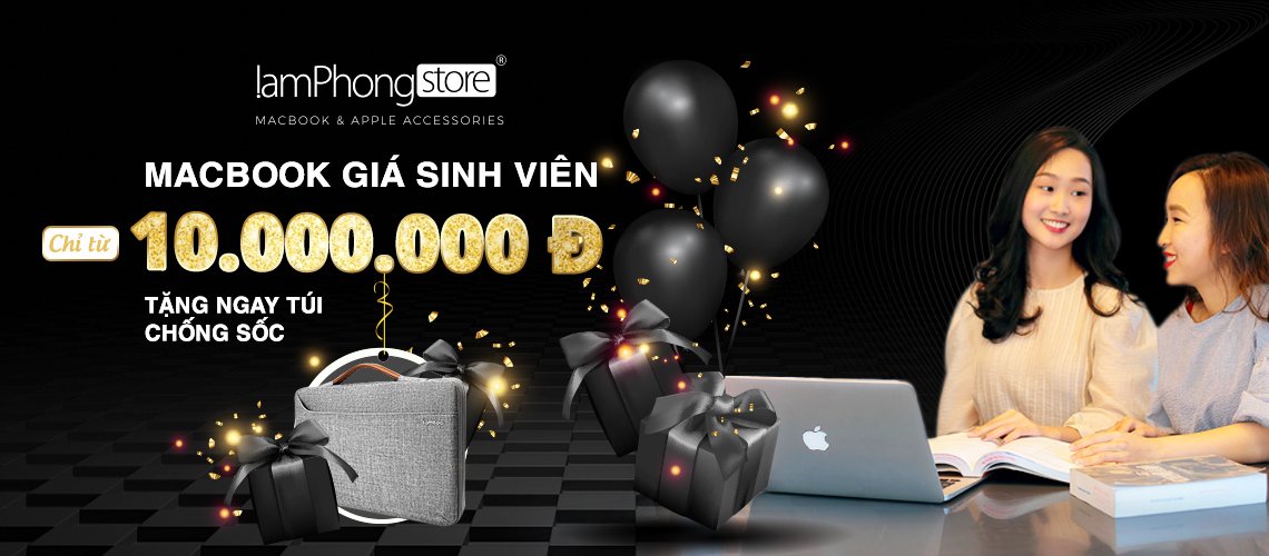 Lâm Phong rất đa dạng về các dòng Macbook phù hợp với học sinh - sinh viên giá chỉ từ 10,000,000 đồng. Ngoài ra bạn sẽ được tặng ngay túi chống sốc khi mua máy tại Lâm Phong.