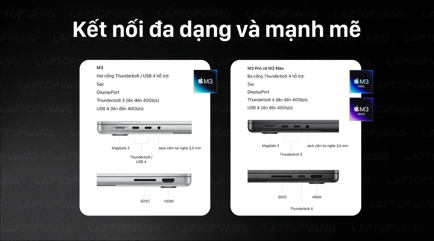 Về số lượng của cổng kết nối Macbook 14 M3 sẽ vẫn có: