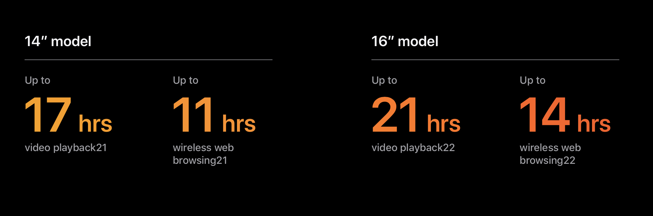 Hiệu suất khủng khiếp khi chơi game ‑ thay đổi tuổi thọ pin - hiệu quả đó là điều kỳ diệu của silicon Apple. Một lần sạc cho phép bạn biên dịch mã gấp bốn lần trong Xcode19 hoặc chỉnh sửa hình ảnh trong thời gian dài gấp đôi trong Lightroom Classic.20 Và không giống như các máy tính xách tay khác, MacBook Pro mang lại hiệu suất đáng kinh ngạc như nhau dù được cắm hay không.