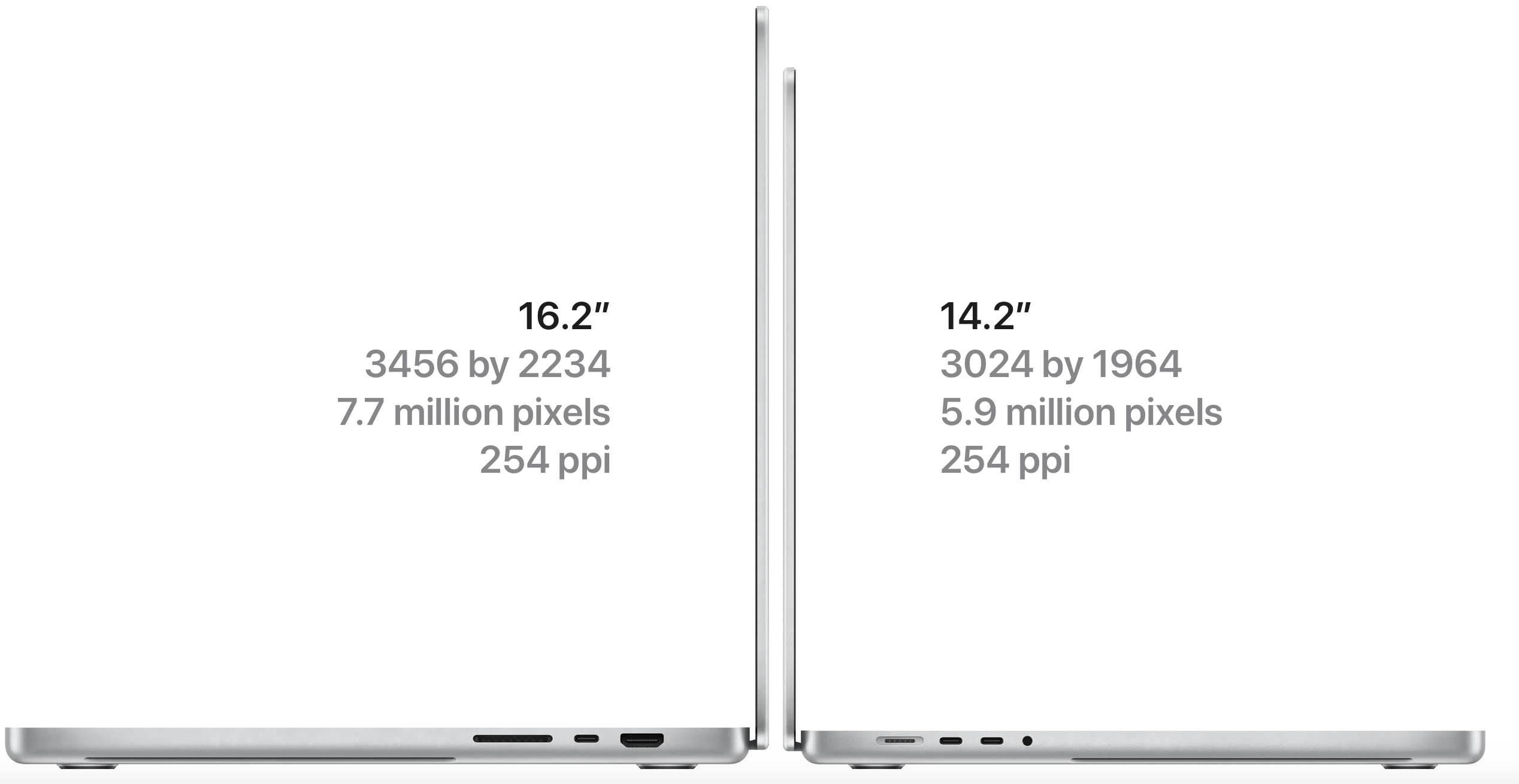 Simultaneously supports full native resolution on the built-in display at 1 billion Up to two external displays with up to 6K resolution at 60Hz at over a billion colors (M1 Pro) or Thunderbolt 4 digital video output Native DisplayPort output over USB‑C VGA, HDMI, DVI, and Thunderbolt 2 output supported using adapters (sold separately) HDMI digital video output Support for one display with up to 4K resolution at 60Hz |