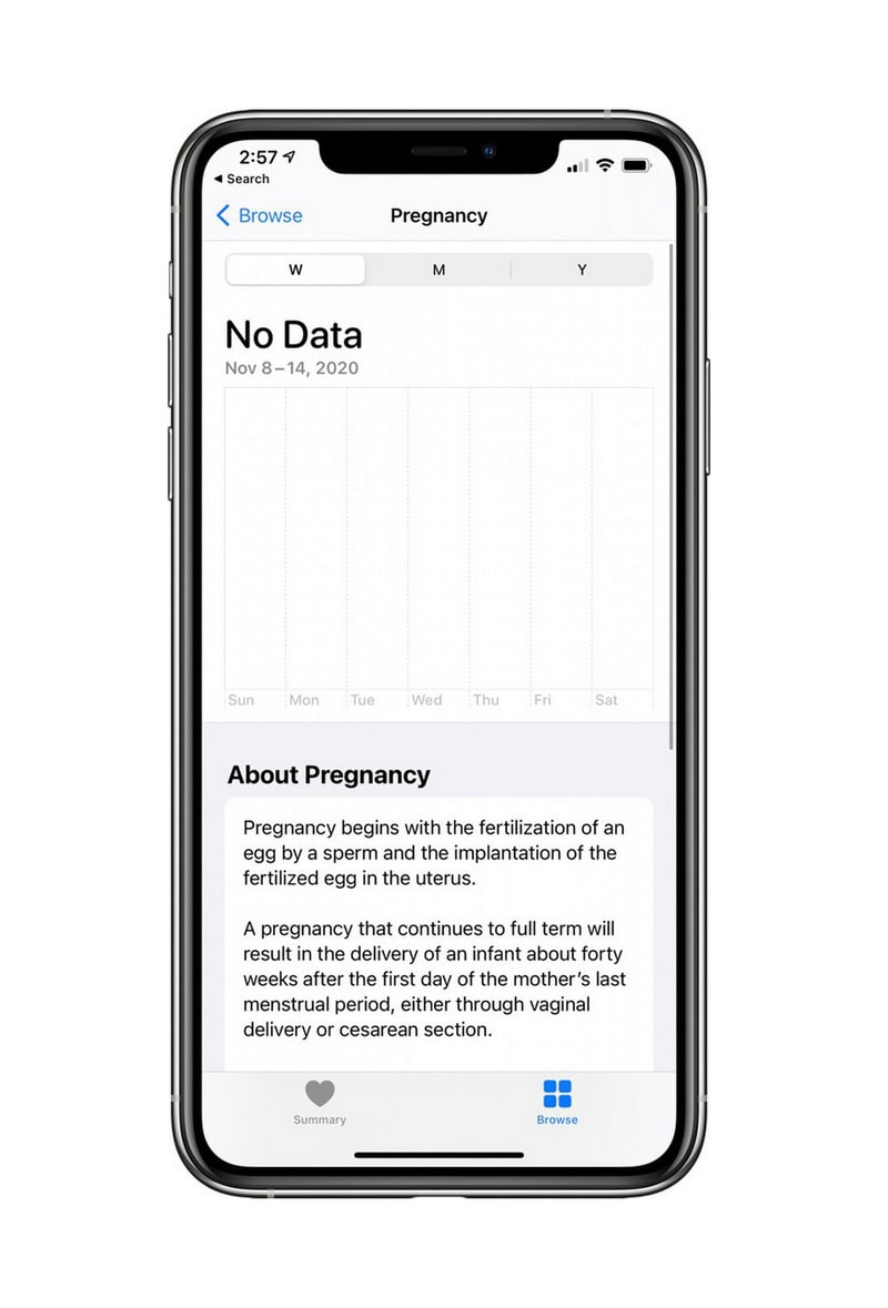 Các sản phụ có thể theo dõi các thông tin về thai kỳ với ứng dụng Sức khỏe trên iOS 14.3