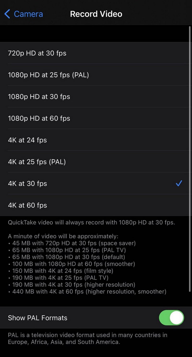 Bên cạnh đó, Apple còn bổ sung thêm tính năng mới cho quay phim đó là quay phim 25fps ở hệ PAL.