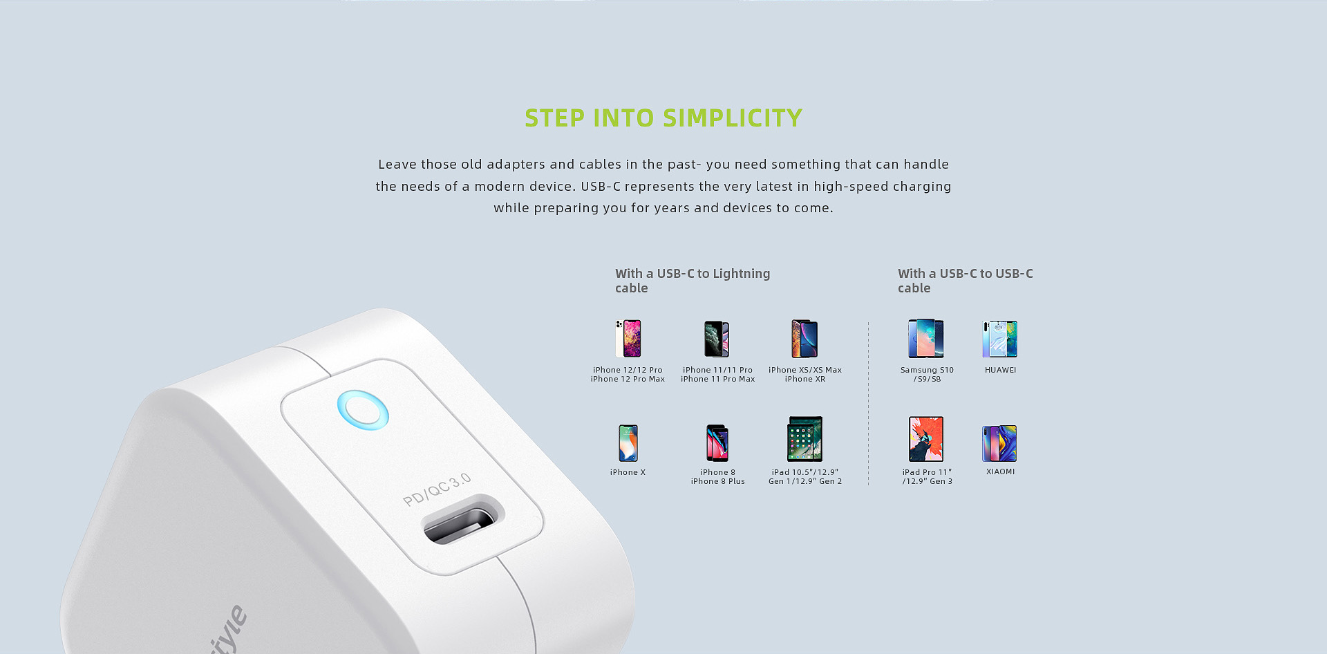 Với công nghệ Power Delivery (PD) có thể sạc iPhone 12 Mini, iPhone 12, iPhone 12Pro, iPhone 12Promax hay các dòng iPhone 11 Series,…và smartphone khác…
