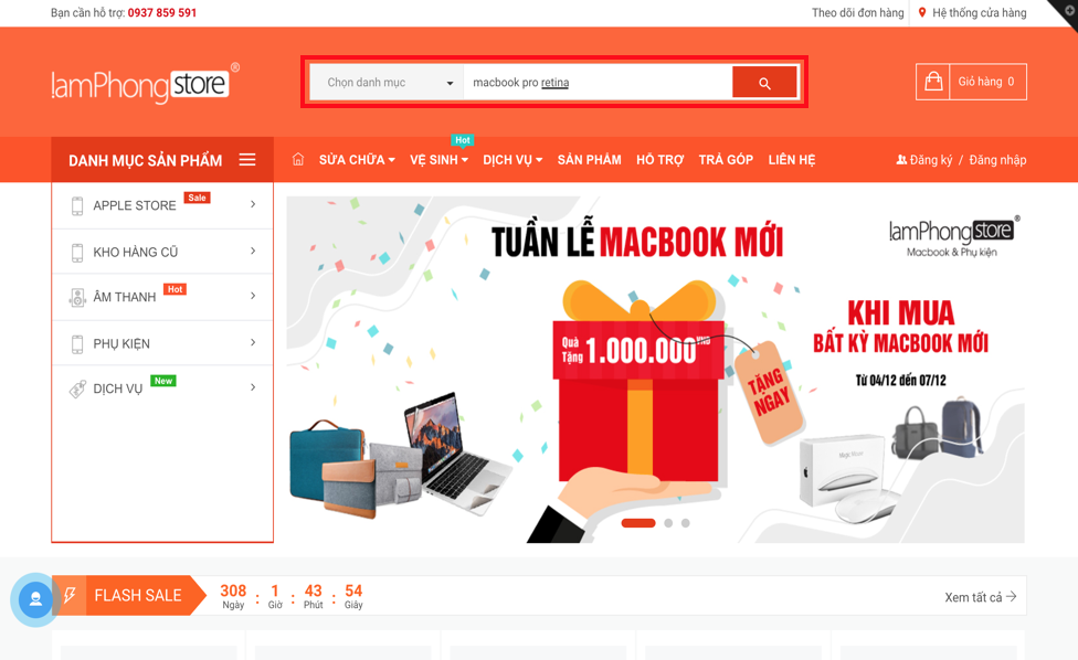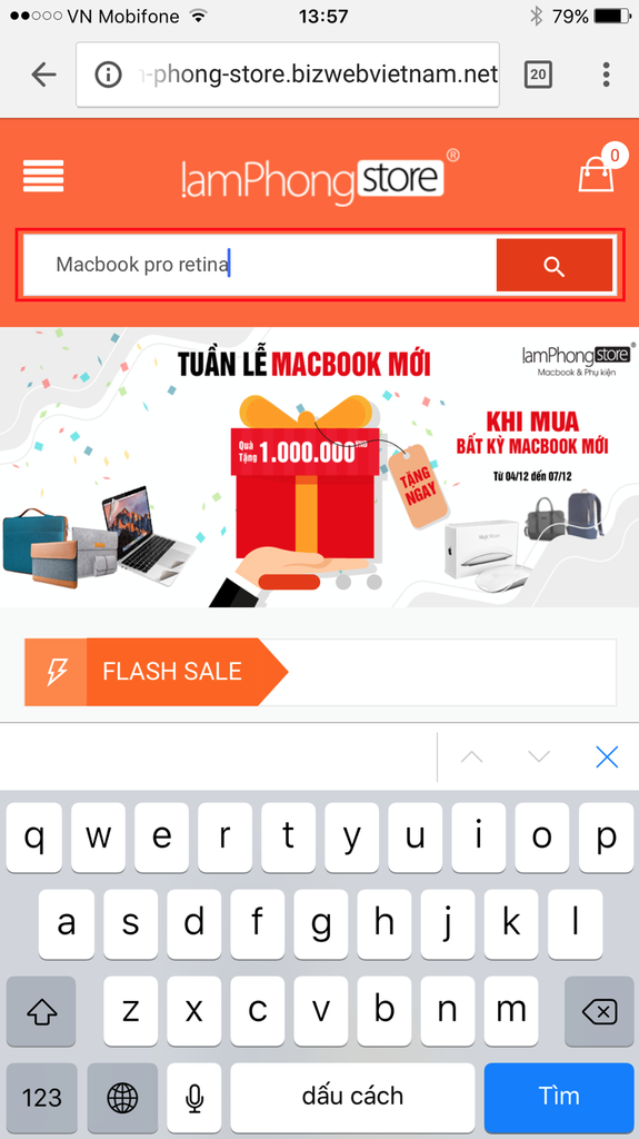 Cách 1: Tìm kiếm bằng cách search tên sản phẩm trên thanh công cụ tìm kiếm:
