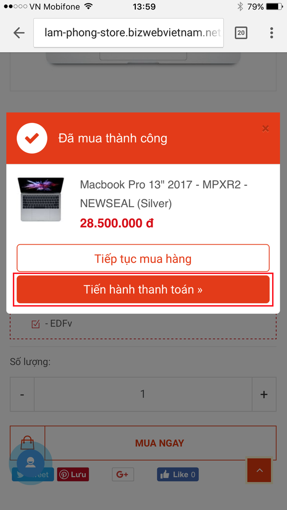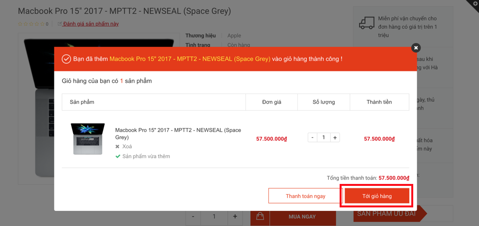 Bấm vào [Mua Ngay] sau đó [Tới Giỏ Hàng]