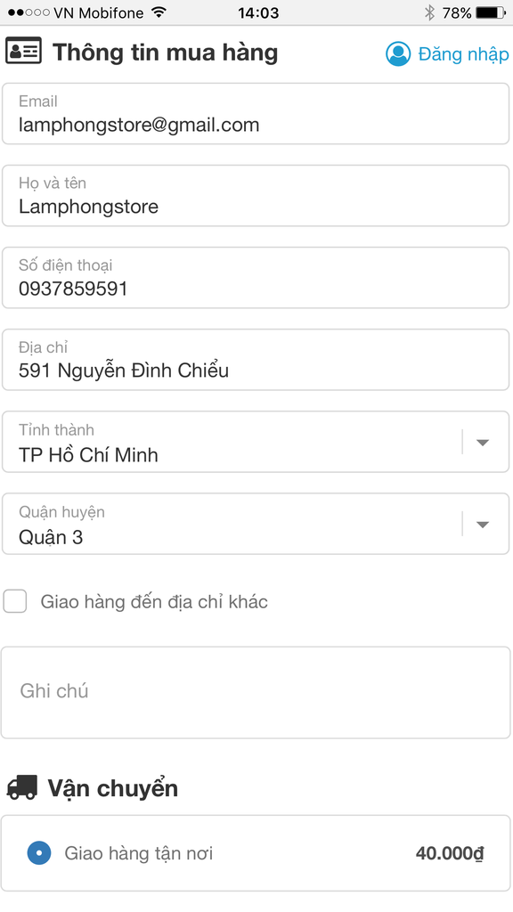 3. Điền thông tin mua hàng: