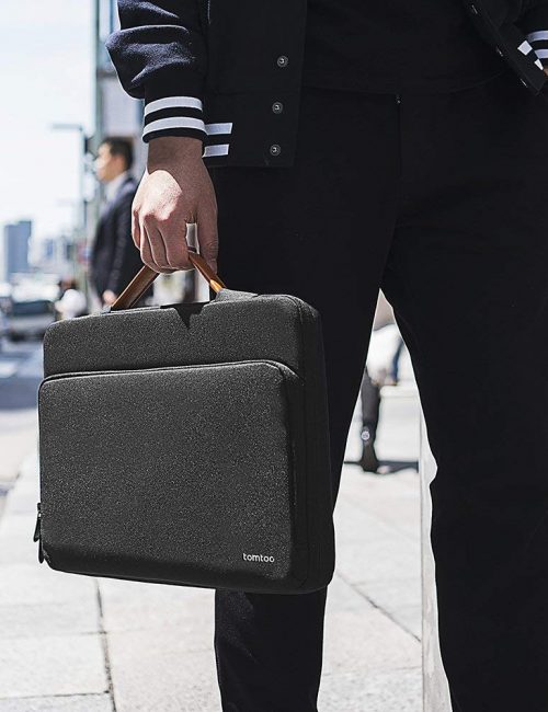 – Sử dụng công nghệ sáng chế tiên tiến của Hoa Kỳ CornerArmor™ trang bị phía dưới túi chống sốc một lớp đệm bảo vệ 360* xung quanh vành túi một cách an toàn như một túi khí xe hơi. Túi xách chống sốc Tomtoc Briefcase thu hút khách hàng khó tính bởi kết cấu chống sốc hoàn hảo giúp máy tính hoàn toàn có thể được bảo vệ khi sảy ra vấn đề va chạm.