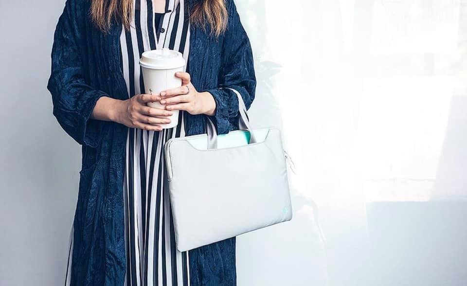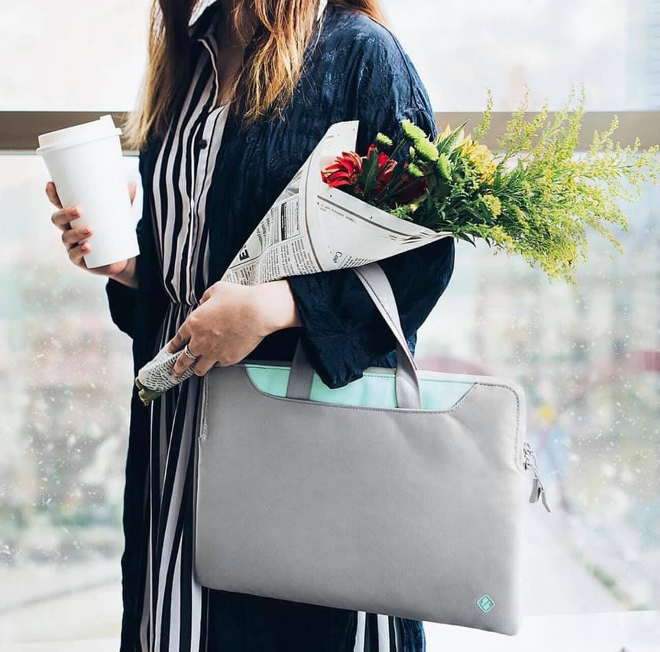 – Chiếc túi chống sốc nhanh chống biến thành một chiếc túi xách thời trăng nhỏ gọn khi cách điệu thêm một quai cầm chắc chắn bằng da PU phía trên giúp tiện lợi hơn cho việc di chuyển.